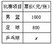 (1)其中观看男篮比赛的门票有 张;观看乒乓球比赛的门票占全部门票的