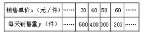 10.(·茂名)我市某工艺厂为配合北京奥运,设计了一款成本为20元∕件的工艺品投放市场进行试销.经过调查,得到如下数据:![]()
