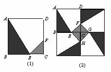 2.(•荆门市)某人定制了一批地砖,每块地砖(如图(1)所示)是边长为0.4米的正方形ABCD,点E、F分别在边BC和CD上,△CFE、△ABE和四边形AEFD均由单一材料制成,制成△CFE、△ABE和四边形AEFD的三种材料的每平方米价格依次为30元、20元、10元,若将此种地砖按图(2)所示的形式铺设,且能使中间的阴影部分组成四边形EFGH.![]()