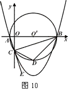 如图10,已知点A的坐标是(-1,0),点B的坐标是(9,0),以AB为直径作⊙O′,交y轴的负半轴于点C,连接AC、BC,过A、B、C三点作抛物线.