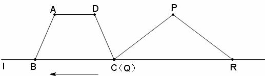 3.(08广东广州)25、(2008广州)(14分)如图11,在梯形ABCD中,AD∥BC,AB=AD=DC=2cm,BC=4cm,在等腰△PQR中,∠QPR=120°,底边QR=6cm,点B、C、Q、R在同一直线l上,且C、Q两点重合,如果等腰△PQR以1cm/秒的速度沿直线l箭头所示方向匀速运动,t秒时梯形ABCD与等腰△PQR重合部分的面积记为S平方厘米