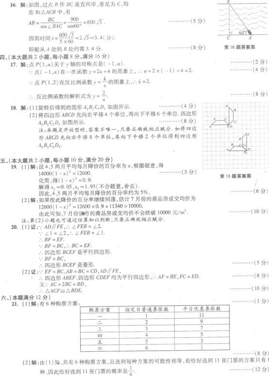 20.如图,AD∥FE,点B、C在AD上,∠1=∠2,BF=BC