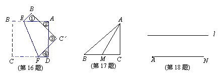 18.数学活动课上,老师在黑板上画直线平行于射线AN(如图),让同学们在直线l和射线AN上各找一点B和C,使得以A、B、C为顶点的三角形是等腰直角三角形.这样的三角形最多能画 ▲ 个.