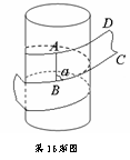 指缠绕中将部分带子拉成图中所示的平面ABCD时的∠ABC,其中AB为管道侧面母线的一部分).若带子宽度为1,水管直径为2,则