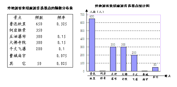 19.绍兴有许多优秀的旅游景点,某旅行社对5月份本社接待的外地游客来绍旅游的首选景点作了一次抽样调查,调查结果如下图表.