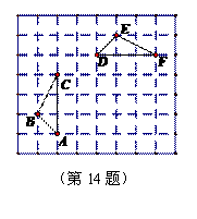 14.如图,在方格纸上△DEF是由△ABC绕定点P顺时针旋转得到的。如果用(2,1)表示方格纸上A点的位置,(1,2)表示B点的位置,那么点P的位置为( )。