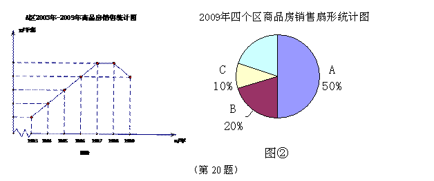 20.某市有A,B,C,D四个区。A区2003年销售了商品房2千套,从2003年到2007年销售套数(y)逐年(x)呈直线上升,A区销售套数2009年与2006年相等,2007年与2008年相等(如图①所示);2009年四个区的销售情况如图②所示,且D区销售了2千套