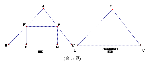 23.如图①,P是△ABC边AC上的动点,以P为顶点作矩形PDEF,顶点D,E在边BC上,顶点F在边AB上;△ABC的底边BC及BC上的高的长分别为a , h,且是关于x的一元二次方程
