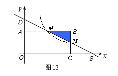 如图13,在直角坐标系中,矩形OABC的顶点O与坐标原点重合,顶点A,C分别在坐标轴上,顶点B的坐标为(4,2).过点D(0,3)和E(6,0)的直线分别与AB,BC交于点M,N.