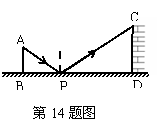 14. 如图是小明设计用手电来测量某古城墙高度的示意图,点P处放一水平的平面镜,光线从点A出发经平面镜反射后刚好射到古城墙CD的顶端C处,已知AB⊥BD,CD⊥BD,且测得AB=1.2米,BP=1.8米,PD=12米, 那么该古城墙的高度是 ▲ 米.