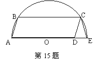 15. 如图,在半圆O中,直径AE=10,四边形ABCD是平行四边形,且顶点A、B、C在半圆上,点D在直径AE上,连接CE,若AD=8,则CE长为 .