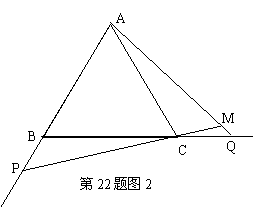 (3)如图2,若点P、Q在运动到终点后继续在射线AB、BC上运动,直线AQ、CP交点为M,则∠CMQ变化吗?若变化,则说明理由,若不变,则求出它的度数;