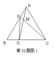 如图1,点P、Q分别是边长为4cm的等边∆ABC边AB、BC上的动点,点P从顶点A,点Q从顶点B同时出发,且它们的速度都为1cm/s,