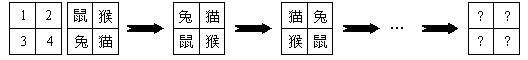 10.如图,四个电子宠物排座位:一开始,小鼠、小猴、小兔、小猫分别坐在1、2、3、4号的座位上,以后它们不停地交换位置,第一次上下两排交换位置,第二次是在第一次交换位置后,再左右两列交换位置,第三次是在第二次交换位置后,再上下两排交换位置,第四次是在第三次交换位置后,再左右两列交换位置,…,这样一直继续交换位置,第2008次交换位置后,小鼠所在的座号是( ).