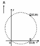 23、(12分)在某张航海图上,标明了三个观测点的坐标为O(0,0)、B(12,0)、C(12,16),由三个观测点确定的圆形区域是海洋生物保护区,如图所示.