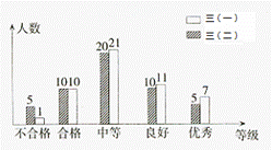 (二)两班学生电脑操作水平等级测试的成绩,其中不合格、合格、中等、良好、优秀五个等级依次记为50分、60分、70分、80分、90分,试结合图示信息解答下列问题:(8分)