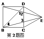 2、如图,在正方形ABCD中,DE=EC,∠CDE=600,则下列关系式:①∠1∶∠4=4∶1;②∠1∶∠3=1∶1;③(∠1+∠2)∶(∠3+∠4)=5∶3中,正确的是( )