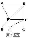 3、如图,ABCD是正方形,P是对角线上的一点,引PE⊥BC于E,PF⊥DC于F。求证:(1)AP=EF;(2)AP⊥EF。