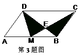 3、如图,已知M是□ABCD的AB边的中点,CM交BD于E,则图中阴影部分的面积与□ABCD的面积之比是( )