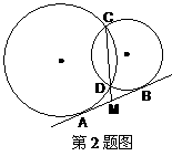 2、如图,两圆相交于C、D,AB为公切线A、B为切点,CD的延长线交AB于点M,若AB=12,CD=9,则MD= 。