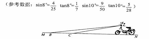 16.某厂家新开发的一种电动车如图,它的大灯A射出的光线AB,AC 与地面MN 所夹的锐角分别为 8