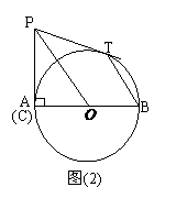 ⑵ 如图⑵,当C点运动到A点时,连结PO、BT,求证:PO∥BT;