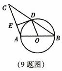 9.如图,AB是⊙O的直径,BC交⊙O于点D,DE⊥AC于点E,要使DE