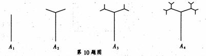 3. (2011浙江省,10,3分)如图,下面是按照一定规律画出的“数形图”,经观察可以发现:图A2比图A1多出2个“树枝”, 图A3比图A2多出4个“树枝”, 图A4比图A3多出8个“树枝”,……,照此规律,图A6比图A2多出“树枝”( )