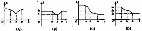 (11)如图,在一个盛了水的圆柱形容器内,其水面以下有一个用细线吊着的下端开了很小的孔、充满水的薄壁小球,当慢慢地匀速地将小球从水下向水面以上拉动时,柱形容器内水面的高度h与时间t的函数图象大致是D