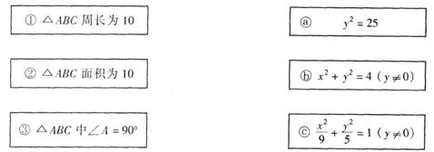 16.在△ABC中,B(-2,0),C(2,0),A(x,y),给出△ABC满足的条件,就能得到动点A的轨迹方程,下面给出了一些条件及方程,请你用线把左边满足的条件及相应的右边A点的轨迹方程连起来:(错一条连线得0分)