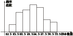 20.(12分)已知一个样本:25,21,23,25,27,29,25,28,30,29,26,24,25,27,26,22,24,25,26,28.以2为组距,列出频率分布表,并绘出频率分布直方图,并估计样本值出现在22-28之间的概率.