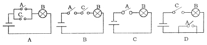 2.(理科学生做)在下列电路图中,表示开关A闭合是灯炮B亮的必要但不充分条件的是