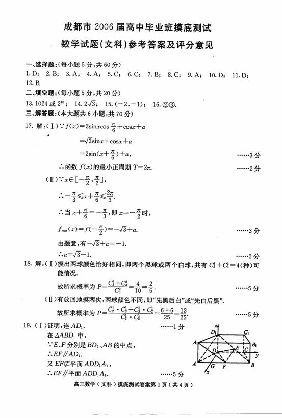 (Ⅱ)建立空间直角坐标系D-xyz (DG是AB边上的高),若BB1=