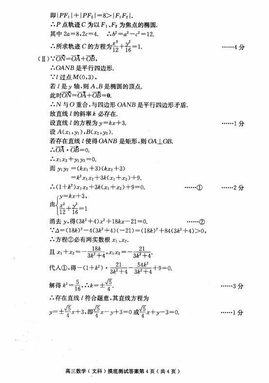 ,问是否存在直线ι使四边形OANB为矩形?若存在,求出直线ι的方程;若不存在,请说明理由.