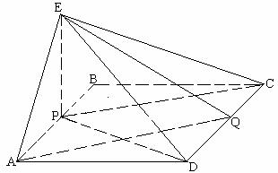19. (本小题满分12分)如图, 在矩形ABCD中, AB=2BC, P, Q分别为线段AB, CD的中点, EP⊥平面ABCD.