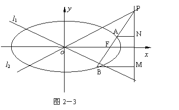 的两条渐近线为l1.l2,过椭圆C的右焦点F作直线l,使l⊥l1,又l与l2交于P点,设l与椭圆C的两交点从左到右依次为B、A(如图2-3),求