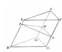 (本小题满分12分)如图,点P为斜三棱柱ABC-A1B1C1的侧棱BB1上一点,PM⊥BB1交AA1于点M,PN⊥BB1交CC1于点N.