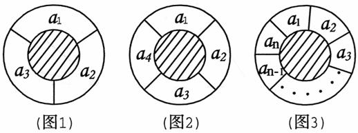 ⑵如图3,圆环分成的n等份为a1,a2,a3,……,an,有多少不同的种植方法?