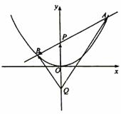 9.(湖南)如图,过抛物线x2=4y的对称轴上任一点P(0,m)(m>0)作直线与抛物线交于A,B两点,点Q是点P关于原点的对称点。