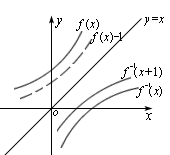 解法三、如图,f(x)和f-1(x)互为反函数,当f-1(x)的图象沿x轴负方向平移一个单位时,做为“镜面”的另一侧的“象”f(x)的图象一定向下平移1个单位,因此f-1(x+1)的图象与f(x)-1的图象关于y=x对称.
