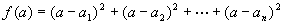 例1.在测量某物理量的过程中,因仪器和观测的误差,使得n次测量分别得到a1,a2,…an共n个数据,我们规定所测量的物理量的“最佳近似值”a是这样一个量:与其他近似值比较,a与各数据的差的平方和最小,依此规定,从a1,a2,…an推出的a=______________.
