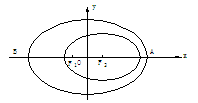 为一个焦点的椭圆。选取坐标系如图所示,椭圆中心在原点。近地点A距地面200km,远地点B距地面350km。已知地球半径R=6371km。
