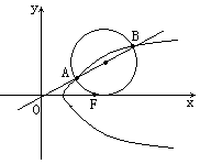 例2. 设过原点的直线l与抛物线y2=4(x-1)交于A、B两点,且以AB为直径的圆恰好过抛物线的焦点F,