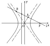 分析:本题的目标是求参数b的取值范围,与例3中第(2)问,在方法上相同,一方面,由直线m与双曲线左支交于两点,可得关于k、b的不等式,Δ=f(k,b)>0,但应注意A、B两点的横坐标xA,xB均小于0;另一方面,由直线l过P及AB中点,又可得到关于k,b的等量关系g(k,b)=0,联立f(k,b)>0及g(k,b)=0,可求b的取值范围。