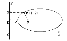 分析:先画出示意图,如图所示:根据已知条件:动椭圆过M(1,2)且以y轴为其准线,可见该椭圆位于y轴右侧,注意到点M在椭圆上,故联想到椭圆的几何性质:椭圆上任一点到焦点的距离与到相应准线的距离之比等于离心率。即可发现间接涉及动顶点A的等量关系。只需用A的坐标先表示出左焦点F的坐标,即可列出轨迹方程。