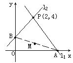 注意到l1⊥x轴时,l2⊥y轴,此时A(2,0),B(0,4)