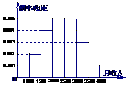 (16)一个社会调查机构就某地居民的月收入调查了10 000人,并根据所得数据画了样本的频率分布直方图(如下图)