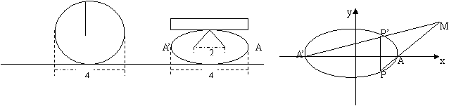 19. (本小题满分12分)如图:半径为2的圆,在外力下压成椭圆,圆心“弹开”,半径裂成两条(长度不变);