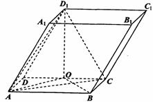 如图,在平行六面体ABCD-A1B1C1D1中,底面ABCD是矩形,AB=2,AD=1,顶点D1在底面ABCD上的射影O是CD的中点,侧棱与底面所成的角为60°。