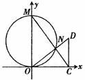 如图,N为圆x2+(y-2)2=4上的点,OM的直径,连结MM并延长交x轴于点C,过C引直线垂直于x轴,且与弦ON的延长线交于点D.